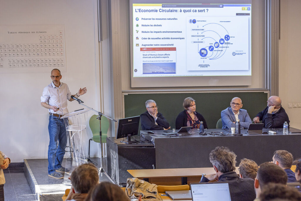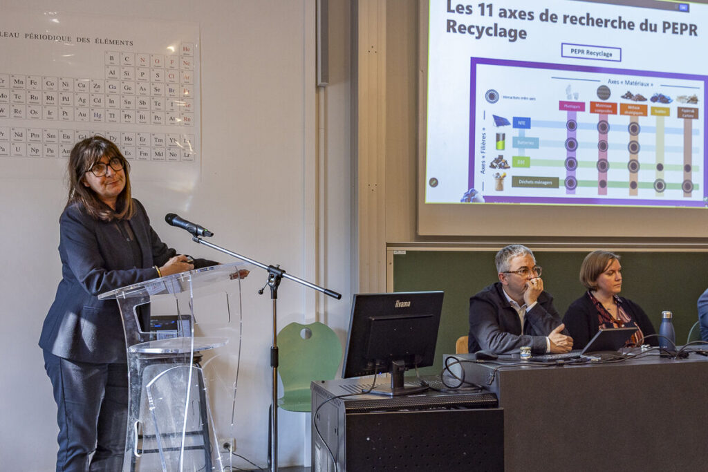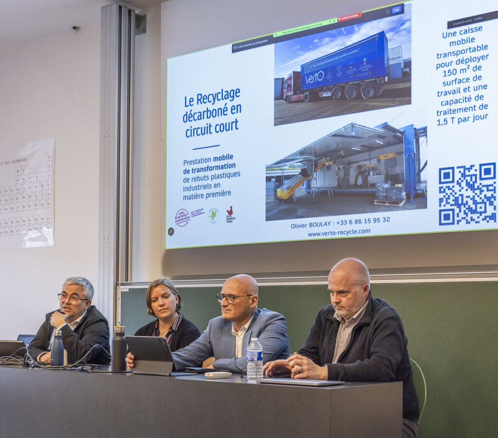 La journée a débuté par une conférence d’Arnaud Littner, de l’IPC – Centre Technique Industriel de la Plasturgie et des Composites, qui a expliqué les axes stratégiques de transition écologique et énergétique, la place du recyclage des plastiques, les prévisions du marché en matière de recyclé, les ambitions de l’Europe et les moyens mis à disposition par l’IPC pour progresser plus vite. Jannick Duchet-Rumeau, directrice du PEPR Recyclage, recyclabilité et ré-utilisation des matières, était également présente lors de cette journée, et a pu présenter les différents projets scientifiques qui composent le programme de recherche.