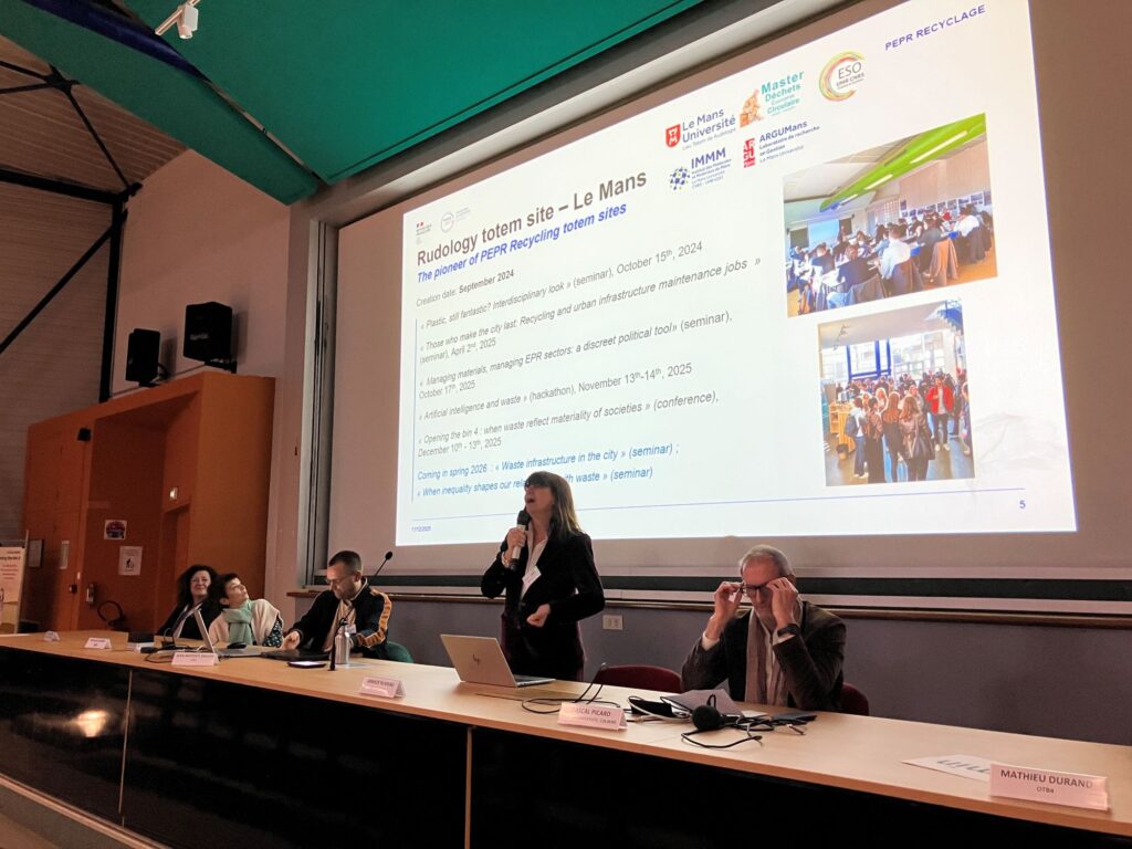 Le 11 décembre, Jannick Rumeau, directrice du PEPR Recyclage, était à l’université du Mans pour inaugurer le lieu-totem de rudologie, à l’occasion de la conférence internationale sur l’étude des déchets Opening The Bin #4.