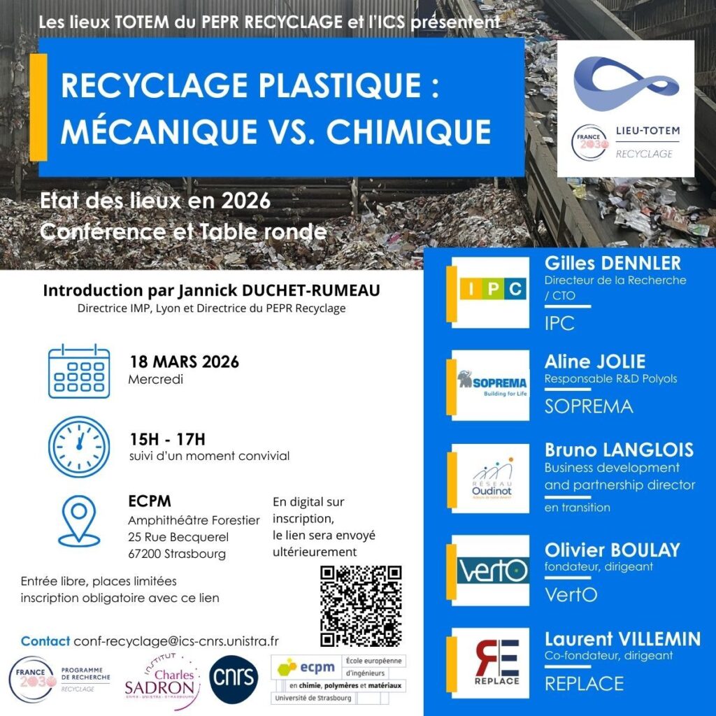 Plus d’informations : Conférence et Table Ronde « Recyclage plastique : mécanique vs. chimique »
