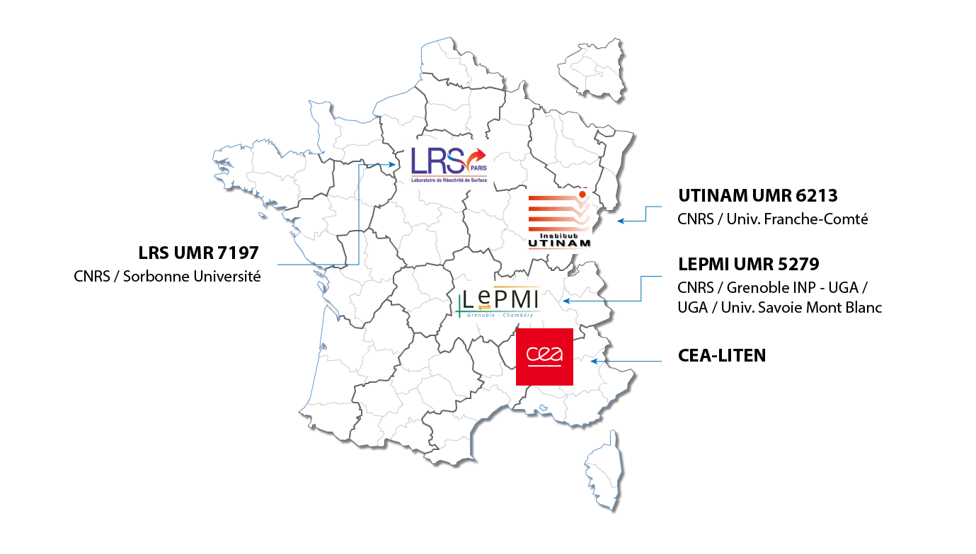 Un premier doctorant sera partagé entre le LEPMI et le CEA-LITEN pour mettre en œuvre un procédé efficace de récupération des sels de platine et d’iridium. Un stagiaire de M2 viendra en support de cette thèse pour les aspects refabrication et validation d’électrocatalyseurs recyclés.